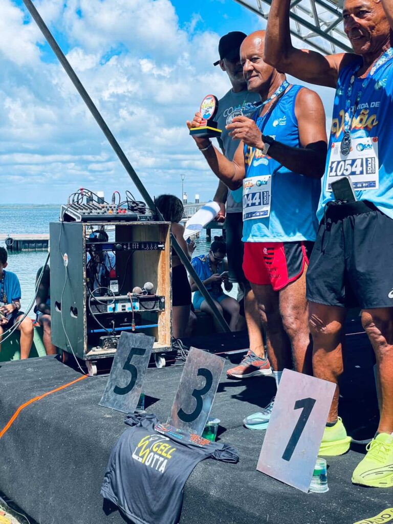 Dos cinco troféus conquistados pela equipe jaguaquarense, dois foram obtidos no pódio geral e três em categorias por faixa etária. Entre os principais resultados, Regina garantiu a terceira colocação no geral feminino, enquanto Leonardo também alcançou o terceiro lugar no geral masculino. Os demais troféus vieram das categorias por idade, consolidando o bom desempenho coletivo do grupo.