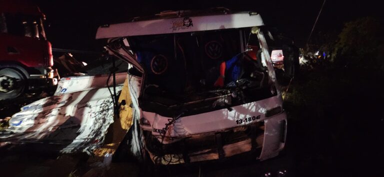 Colisão entre dois carros ocorreu durante a noite e mobilizou equipes de socorro e a Polícia Rodoviária Estadual. Um grave acidente de