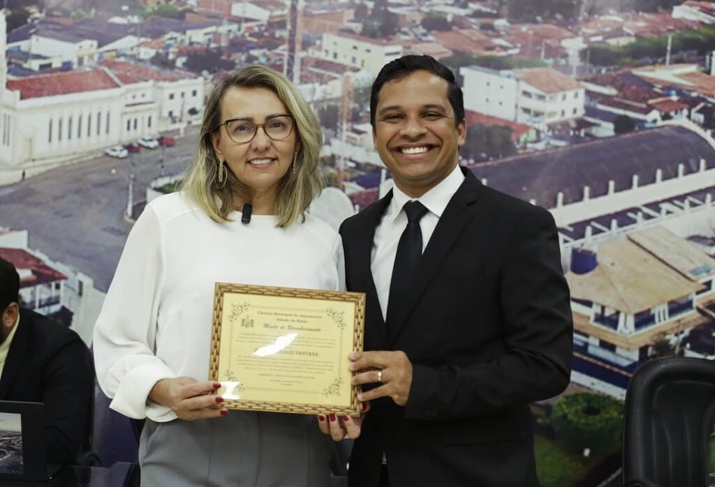 Através de uma moção de reconhecimento de autoria do Vereador Dr.Nei Filho (PT) a ex-diretora do Centro de Atendimento Educacional Especializado Alegria de viver, Joelma Queiroz Santana, foi homenageada na última sessão ordinária da Câmara Municipal de Vereadores de Jaguaquara-BA, realizada na noite da terça-feira dia 25/02/25.