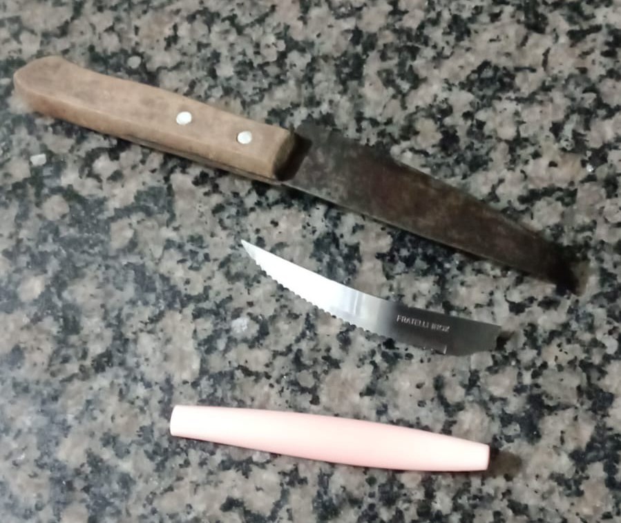 Na madrugada desta quarta-feira (05/03/25), após o recebimento de uma denúncia, a Guarda Municipal de Jaguaquara-BA (GCM) deu início a uma ronda na região do centro da cidade. A guarnição de plantão, sob o comando de JOSÉ DE SOUZA, atestando a veracidade da denúncia, localizou um casal em um momento de confronto. Os agentes da Guarda interviram imediatamente. A mulher que deflagrava golpes de faca contra o homem foi detida. Além de uma faca de serra em mãos, ela guardava uma outra faca na cintura. Segundo as informações, ela se armou com as facas para ir até um bar confrontar outra mulher no bairro do Ceará. O seu companheiro, tentava impedi-la, quando começou a briga. Por sorte, ele desviou dos golpes dela e com a intervenção da GCM, o pior não aconteceu.